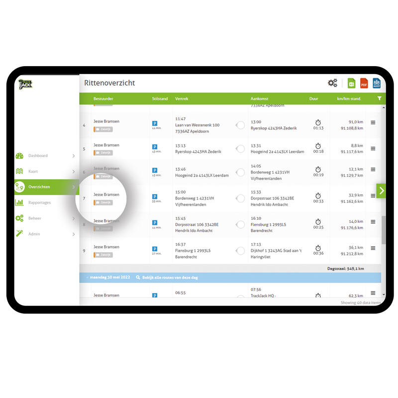 Nutzen Sie Ihren Computer, um die Fahrten anzupassen? Klicken Sie dann einfach auf das Wort „Geschäftlich“ oder „Privat“, um den Charakter der Fahrt anzupassen.